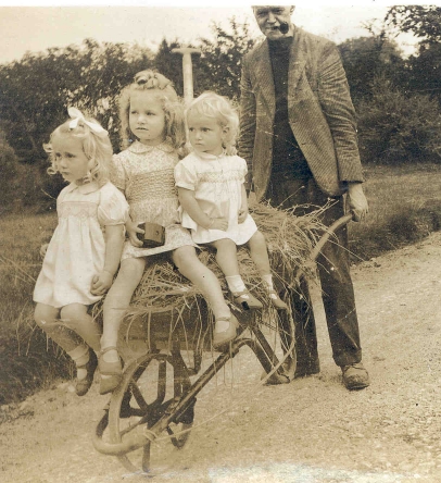 Patricia, Penelope Ann and Judy with Grandpa Boyd, Sunnycroft, August 1944 |