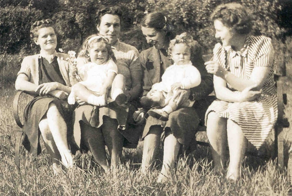 | Molly, Ivy Thompson (with Janet), Auntie Mac (with Ann), and Peggy, June 1941 |