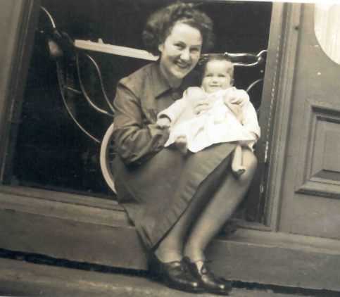 Peggy holding Penelope Ann, aged 2 months, at Marlden Avenue |