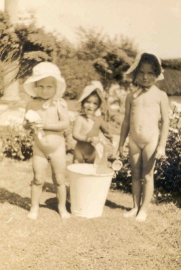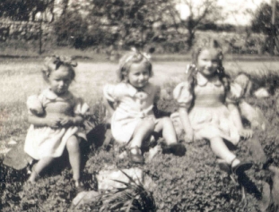 | Judy, Patricia and Penelope Ann, in garden, VE day, 8 May 1945 |