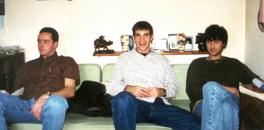 Simon March, husband of Rachel, Tim Storr and Ben, partner of Pippa Jones, Christmas 1999 |