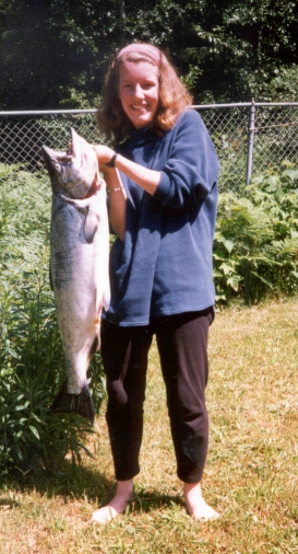 | Tanya Storr on Quadra Island, with prizewinning 20lb salmon, June 1996 |