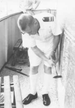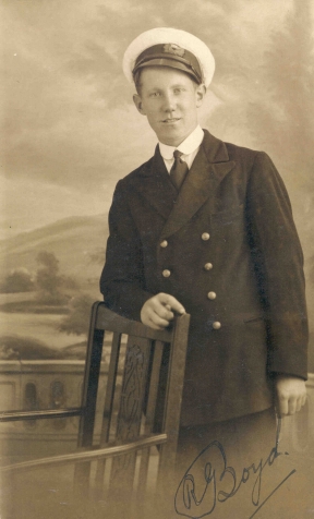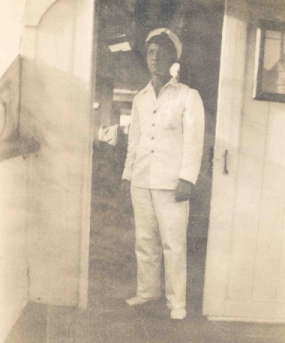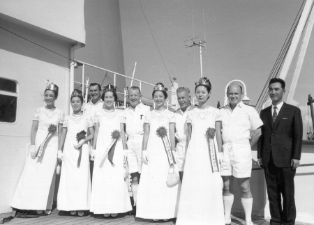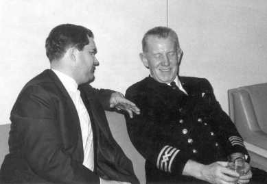 Robert, with guests, in uniform, on the Achilles, date unknown, probably 1960s |