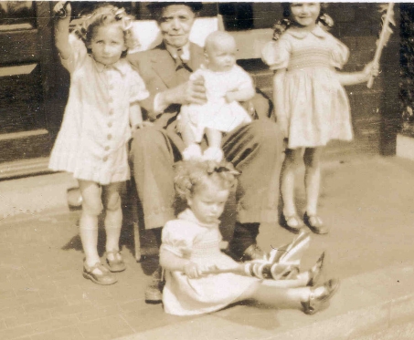 | Grandpa Boyd, with Patricia, Lesley, Penelope Ann and Judy, VE day, 8 May 1945 |