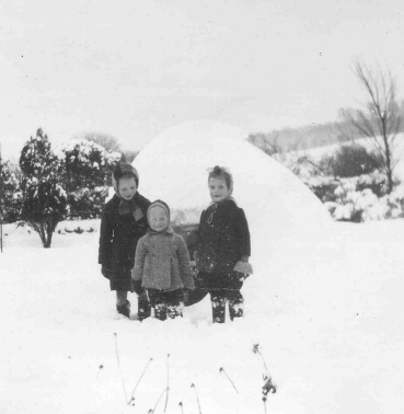 Robinson girls outside igloo, built by Grandpa Boyd, February 1947 |