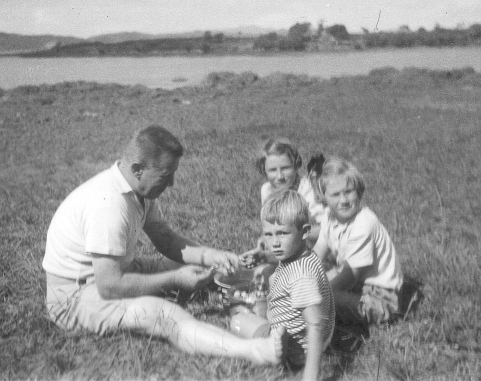| Robert Boyd with Morrison children in New Zealand, March 1957 (Jennifer, Susan and John?) |