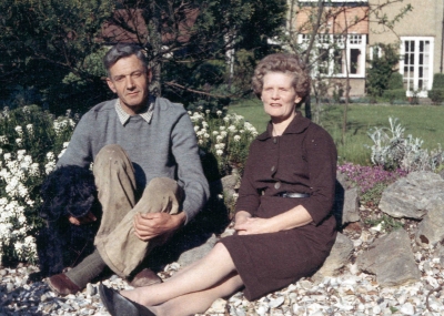 | Molly and Noel Robinson, at Windyridge, with Kipps the dog, May 1962 |