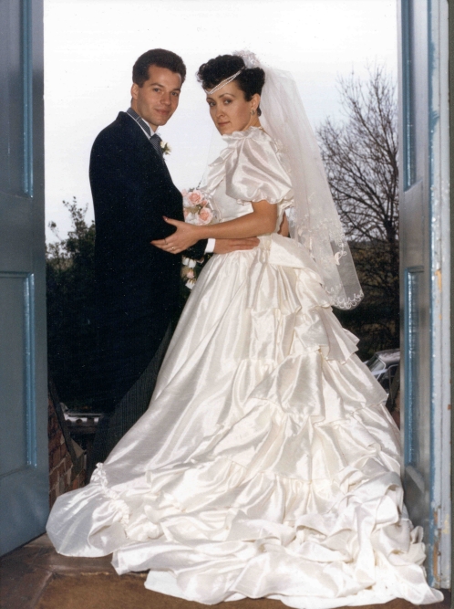 Rachel Jones and Simon March on their wedding day, July 1995, Oswestry |