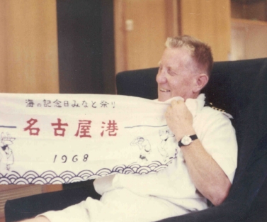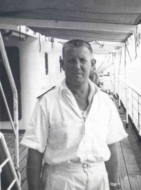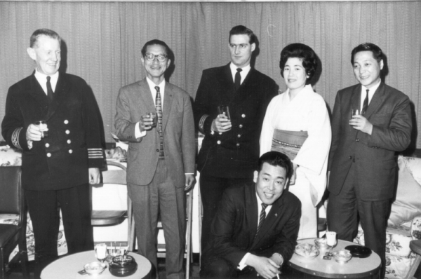 Robert, with guests, in uniform, on the Achilles, date unknown, probably 1960s |